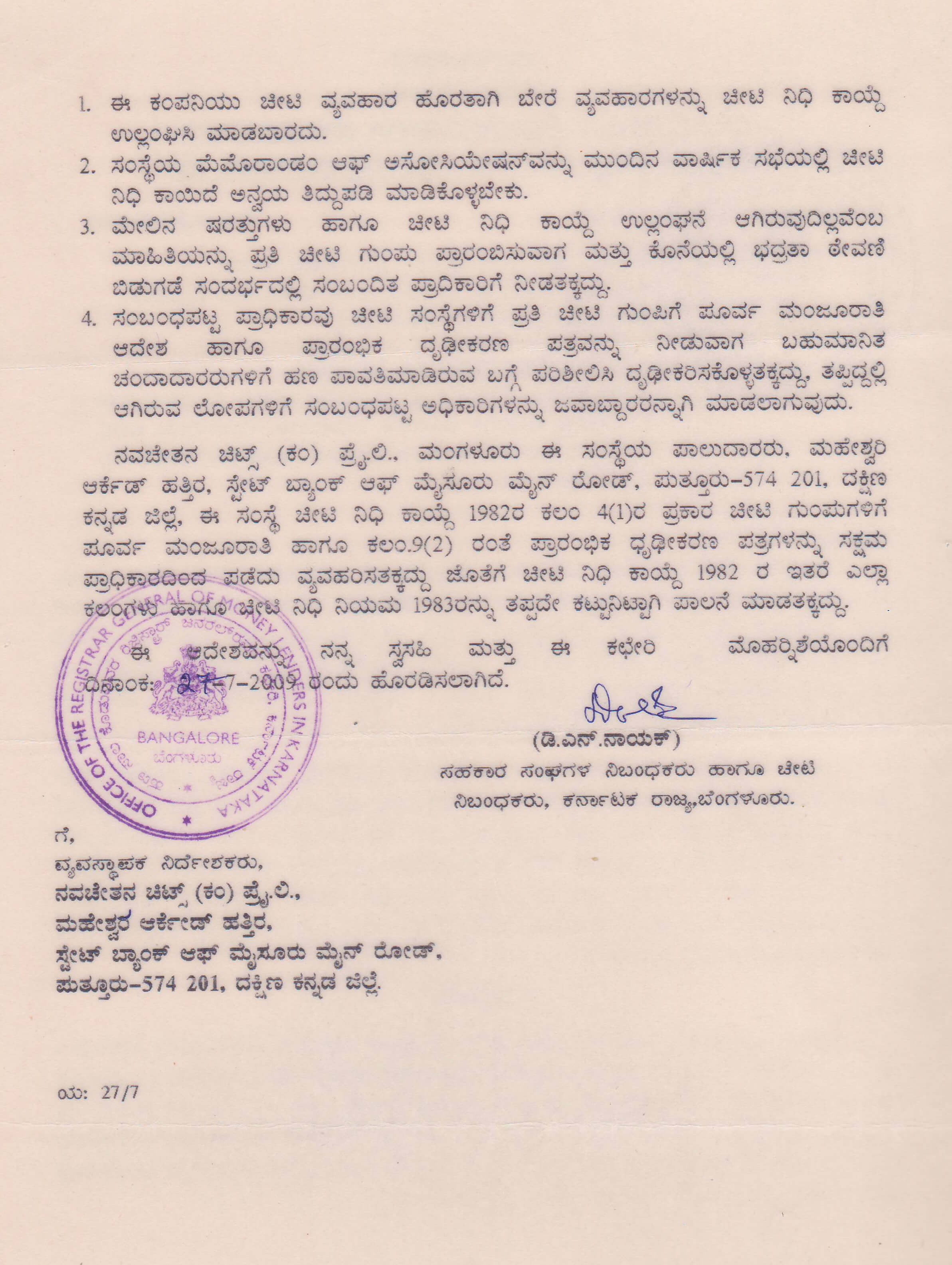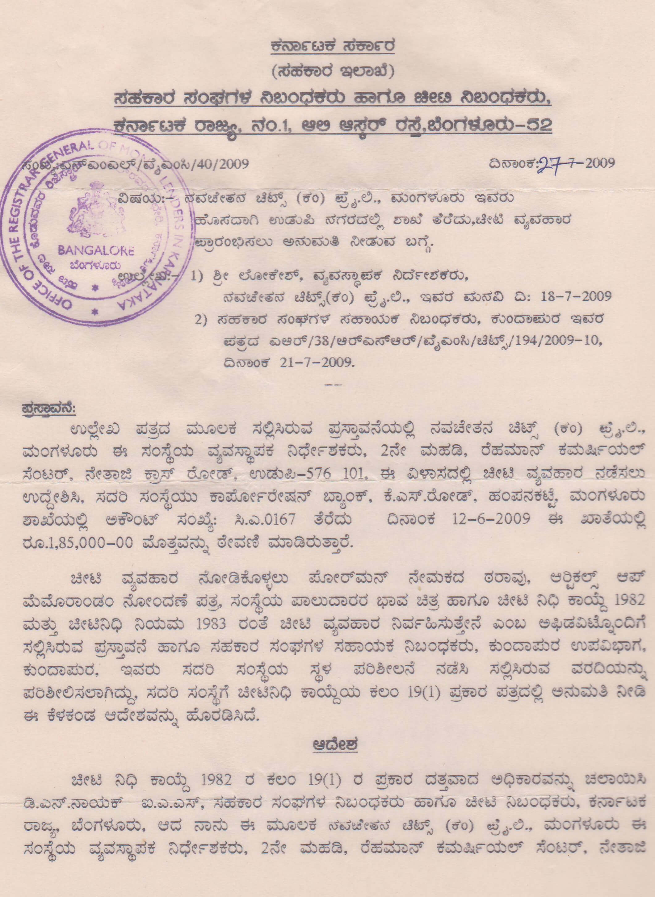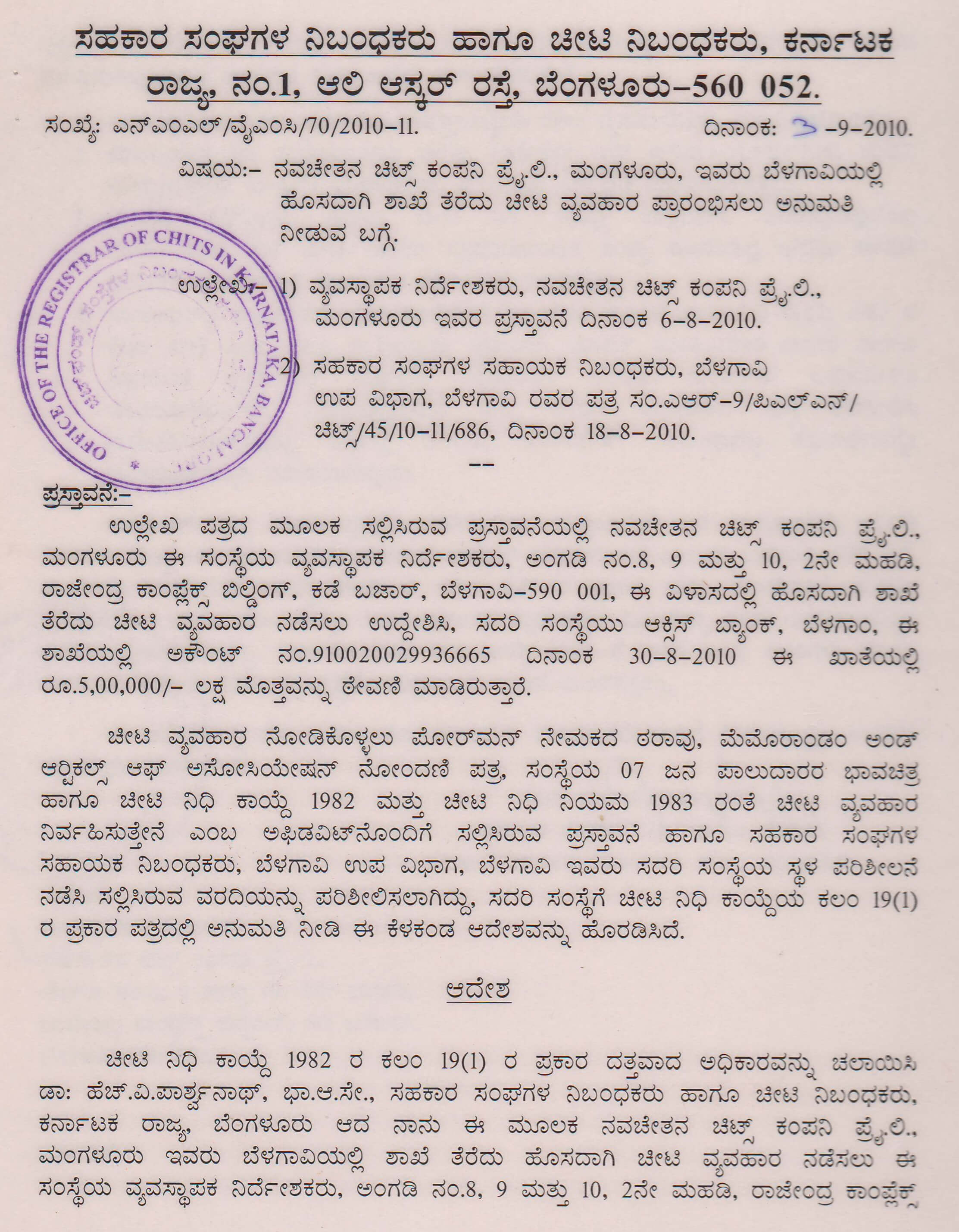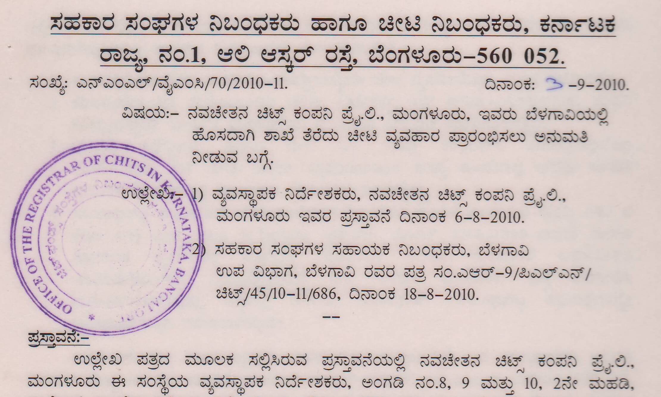Successfully we have completed 14 Years in Business. Our sister concern Navachethana finance company is providing loans for our clients